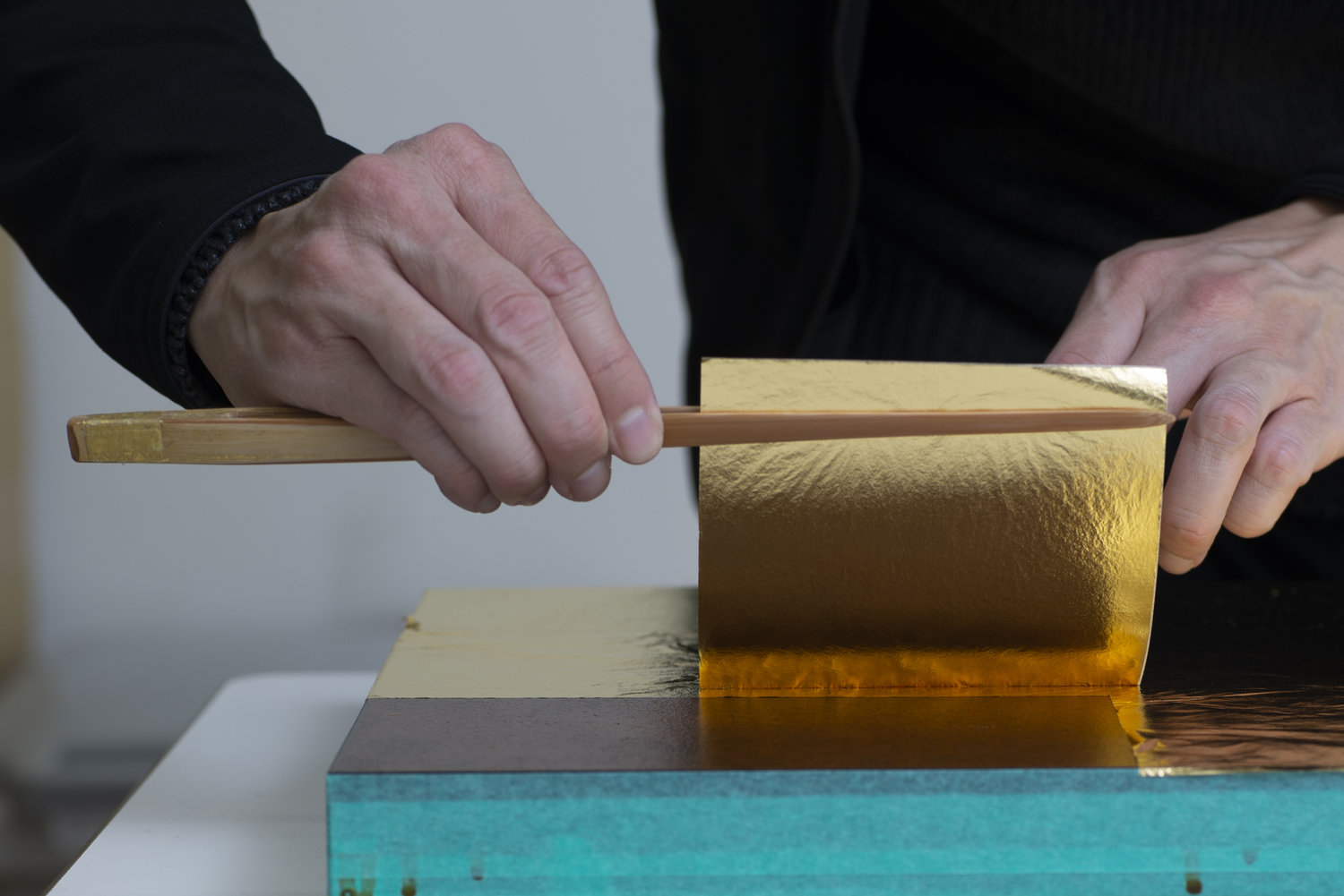 Shinichi Maruoka doesn't limit himself to traditional techniques: he sometimes shapes the gold leaf himself to fully exploit its potential and latent energy. Every day, he refines his expertise, blending artisanal rigor and creativity to create pieces where meticulousness and expressiveness converge.