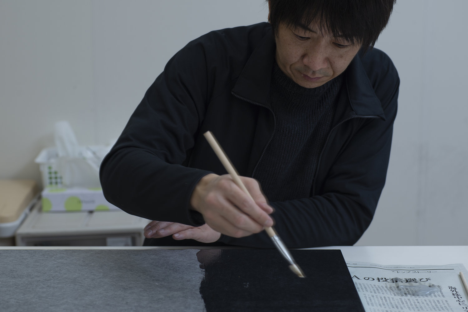 Originally from Mie Prefecture, Shinichi Maruoka graduated from Kanazawa College of Art, where he specialized in craftsmanship. He joined Hakuza, the iconic Japanese gold leaf workshop, where he has worked for eighteen years. Now Creative Director and head of the workshop, he embodies the company's philosophy: to reveal the intrinsic power and beauty of gold leaf, while mastering the precision of its application on each object.