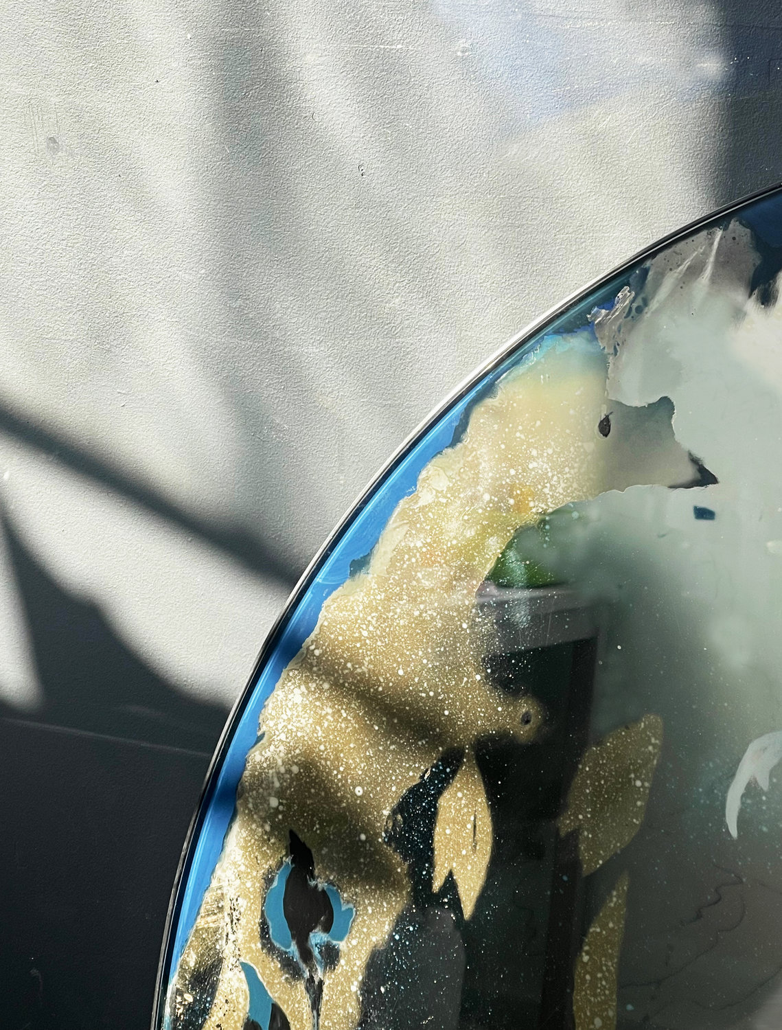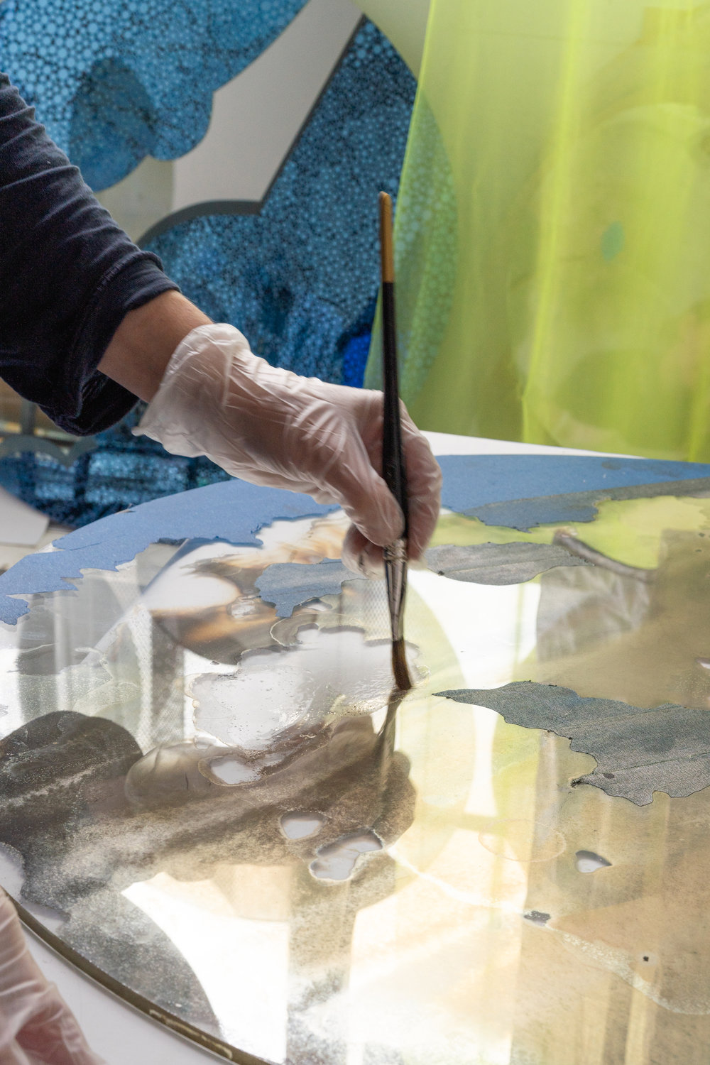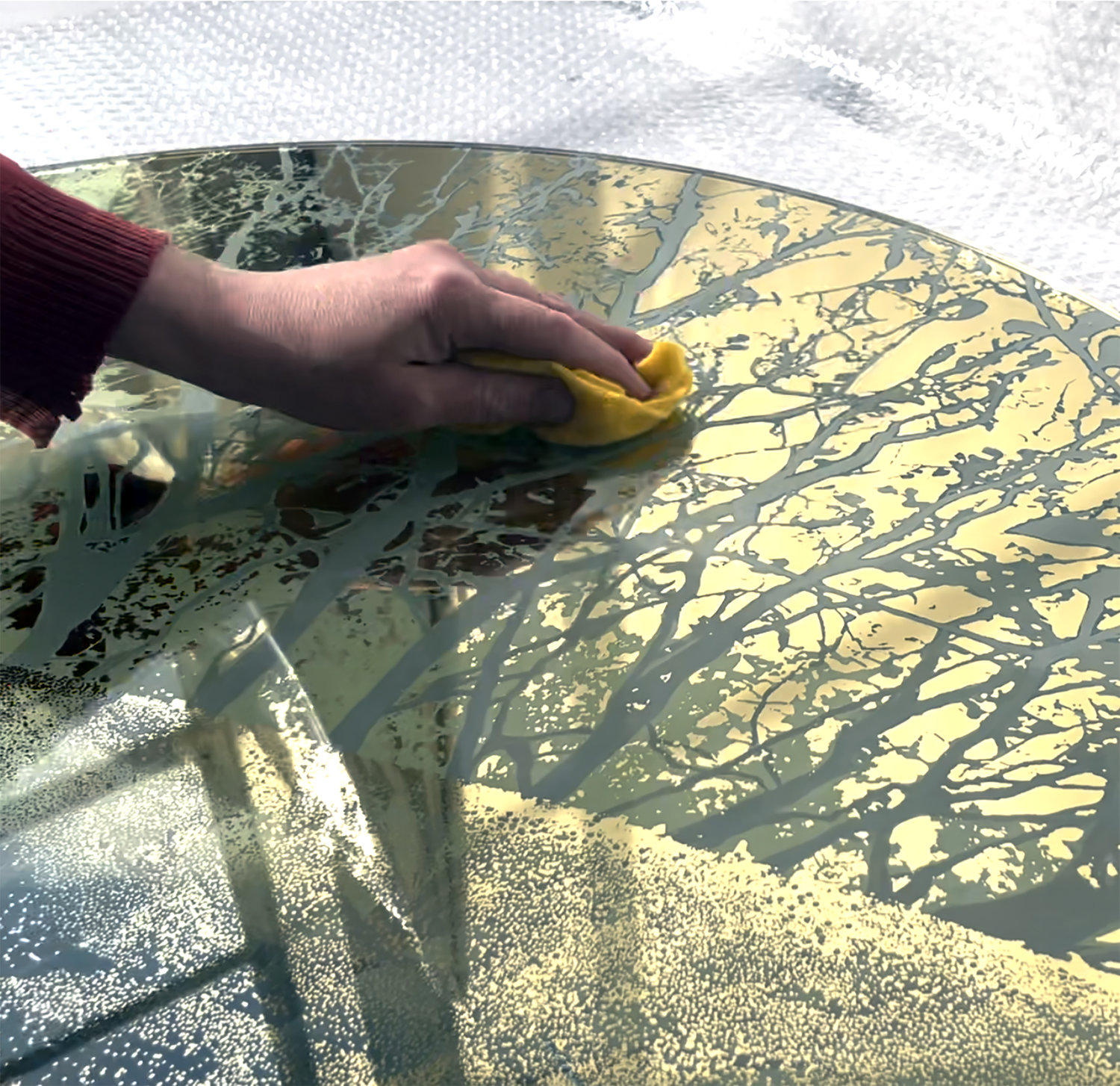 The finishing touches—textures on the gilding, paints applied to the back, and protective varnishes—reveal the full richness of the decoration. At the end of this process, each participant designs a unique églomisé mirror, a personal piece where technical heritage, precise gesture, and creative freedom converge. It's a way of inhabiting centuries-old knowledge and projecting it into a resolutely contemporary aesthetic.