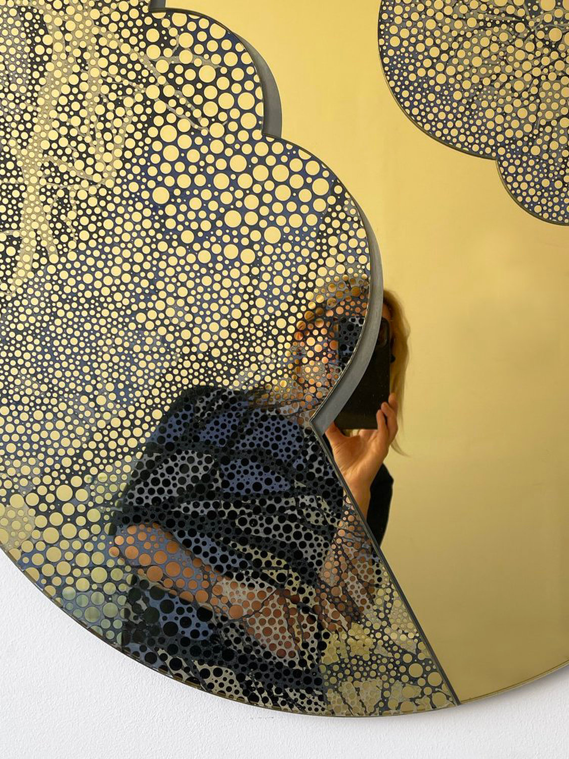 Trained in sculpture at Chelsea School of Art, Elizabeth Kent quickly established herself in the British art scene. Her work has been exhibited in prestigious museums, galleries, and art fairs, including the Victoria and Albert Museum. At the crossroads of contemporary art and fine craftsmanship, she regularly collaborates with the luxury hospitality sector, where her mirrors become installations in their own right, revealing the atmosphere of a space as much as they shape it.