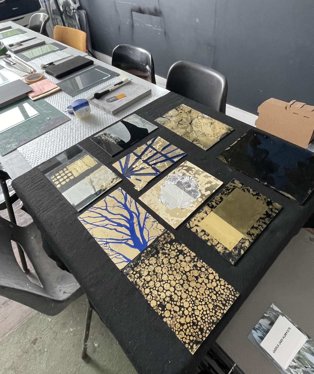 This workshop, led by Elizabeth Kent, introduces participants to the art of verre églomisé mirrors, where gilding and painting meet on the reverse side of the glass to create exquisitely delicate mirror effects. Through preparing the surface, applying gold or silver leaf, creating designs, and mastering the interplay of transparency, each participant learns to compose unique pieces that blend brilliance, depth, and artisanal precision.