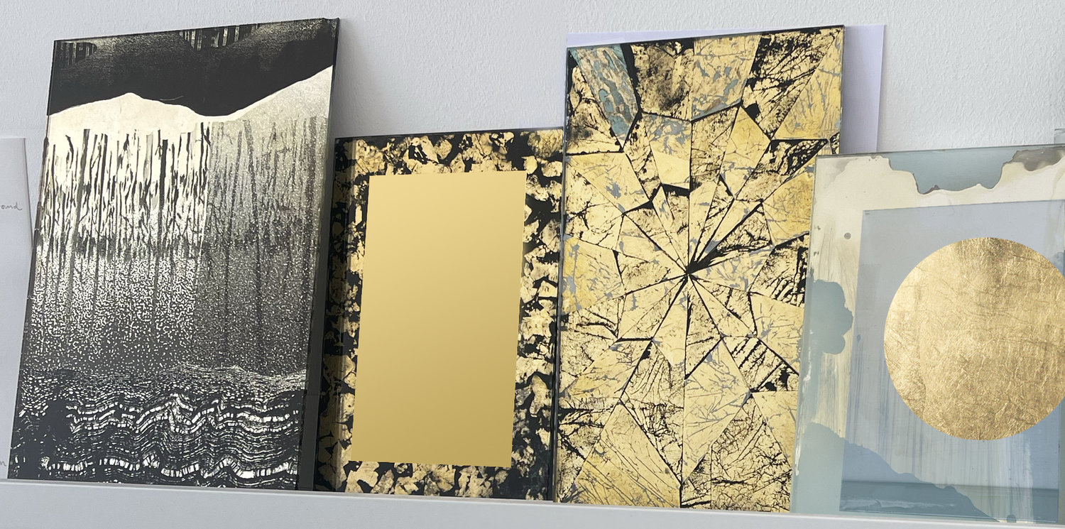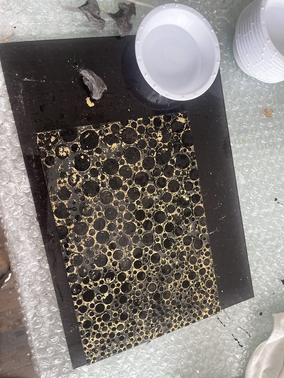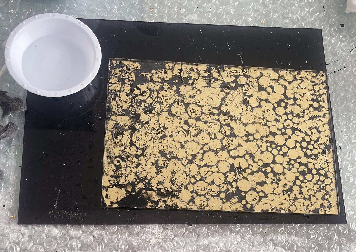 • Finalizing the poor man's etch panel: cleaning, removing excess gilding, adding painted backgrounds
