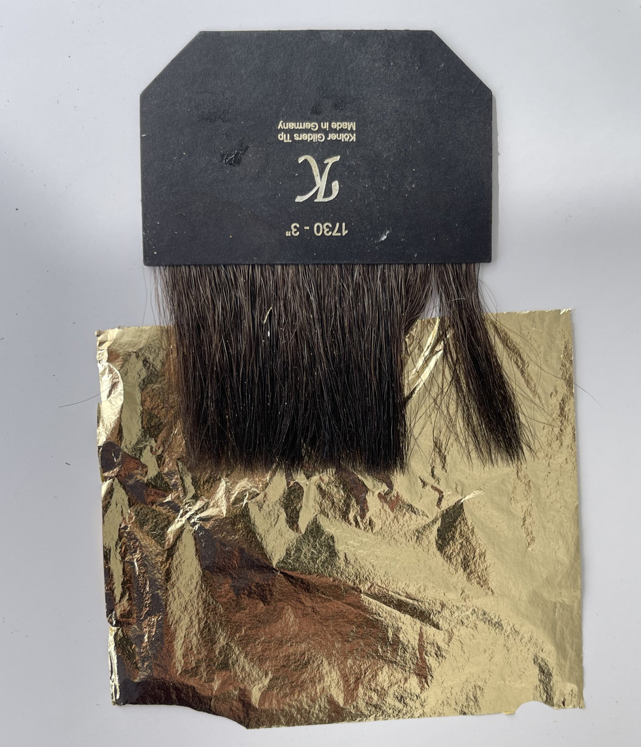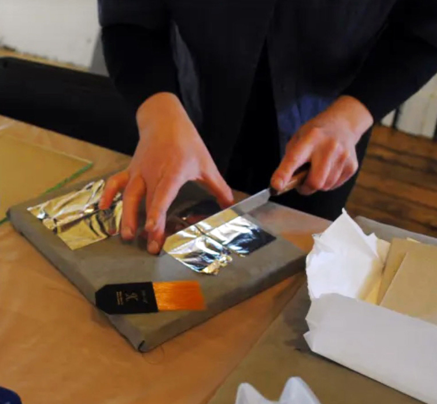 • Handling of gilding tools: gilding cushion, leaf cutting, loading the brush
