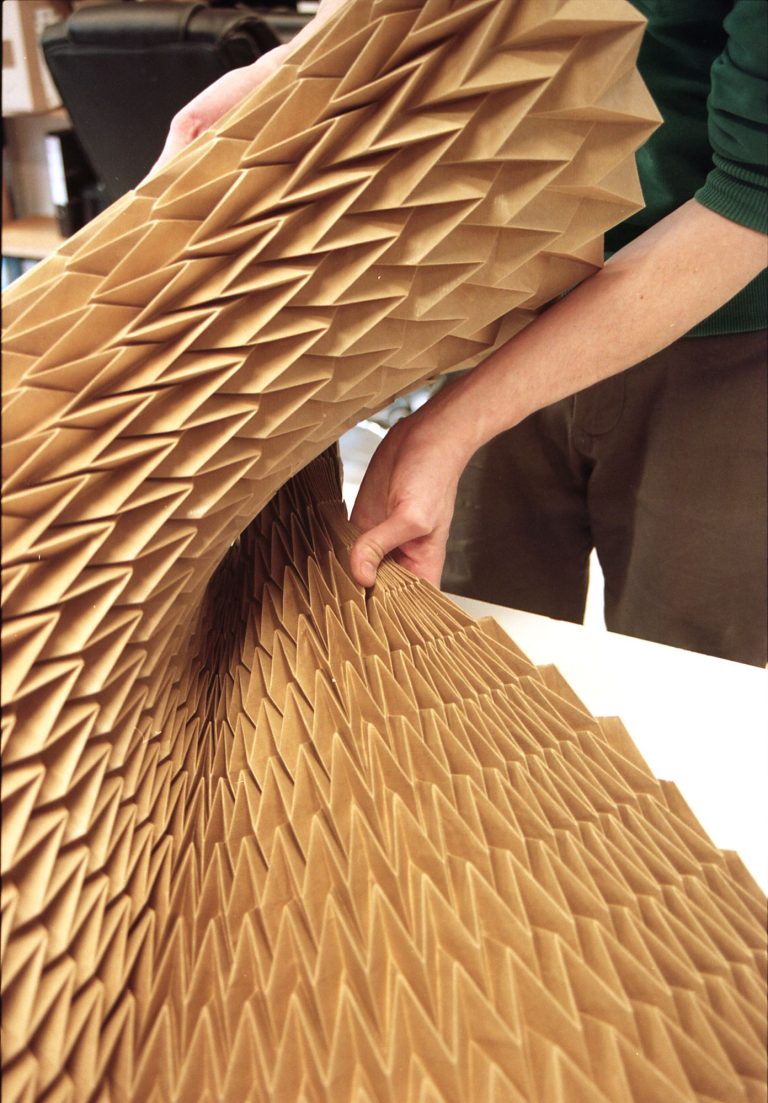 For many years, he has collaborated with architects, designers, artists, and researchers to develop the folding technique in novel aesthetic and functional uses. This expertise has earned him recognition as a master craftsman from the Michelangelo Foundation, confirming the uniqueness and rigor of his approach.