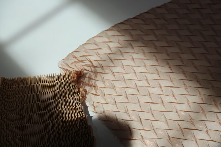 For Dewi, folding is not just a technique: it is an aesthetic language and a lens through which to observe the world. Fascinated by nature's "folded intelligence," he draws inspiration from its structures to create sensitive and innovative applications, whether working with paper, textiles, or biomaterials. His practice, primarily manual, is enriched by contemporary and digital techniques, offering complete mastery of gestures, tools, and design processes.
