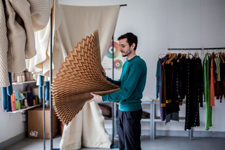 Combining theory and practice, this workshop offers progressive exercises allowing participants to experiment with classic pleats (accordion, flat pleat) as well as more complex shapes such as Yoshimura or chevron. Each participant will leave with their own molds and will discover techniques and materials for designing or reusing these molds beyond the workshop.