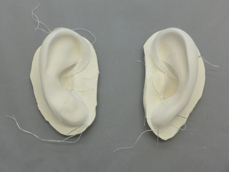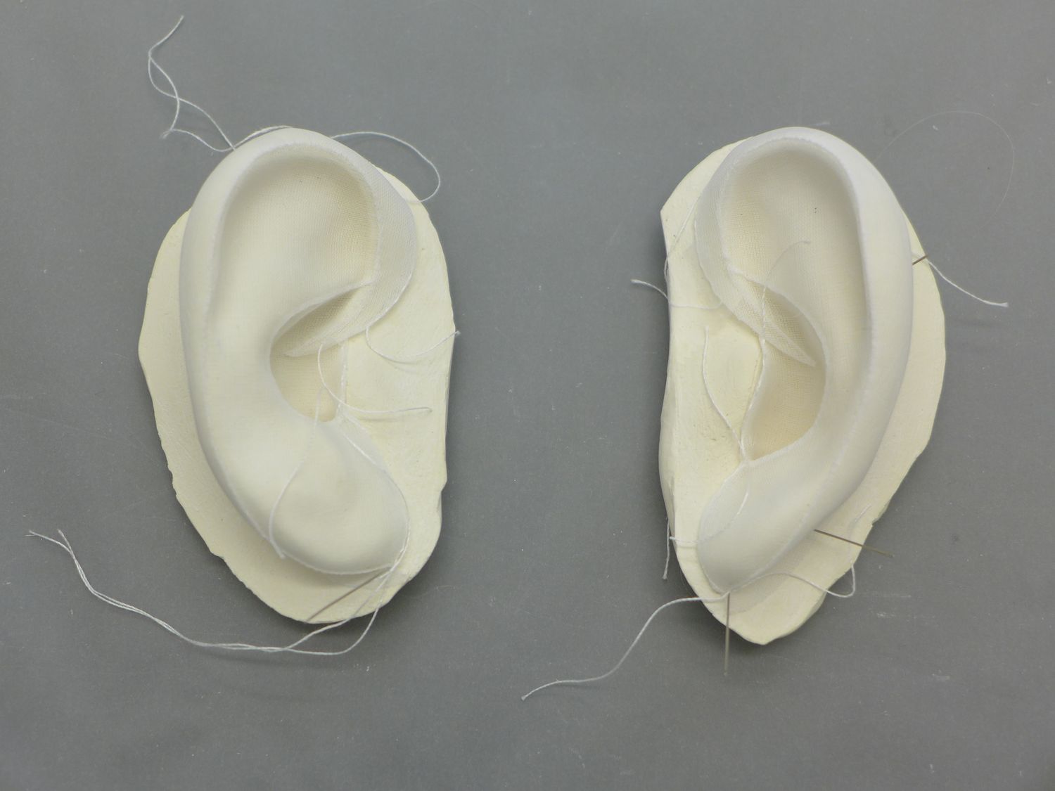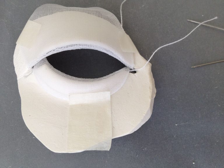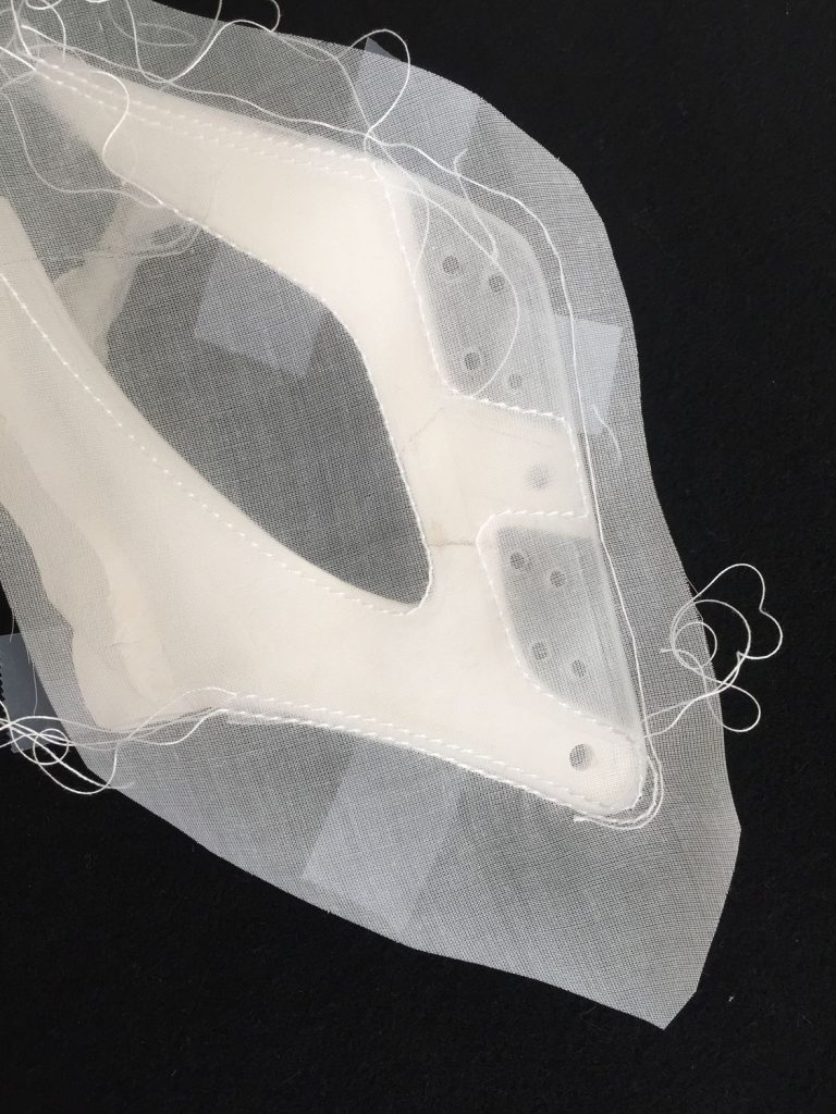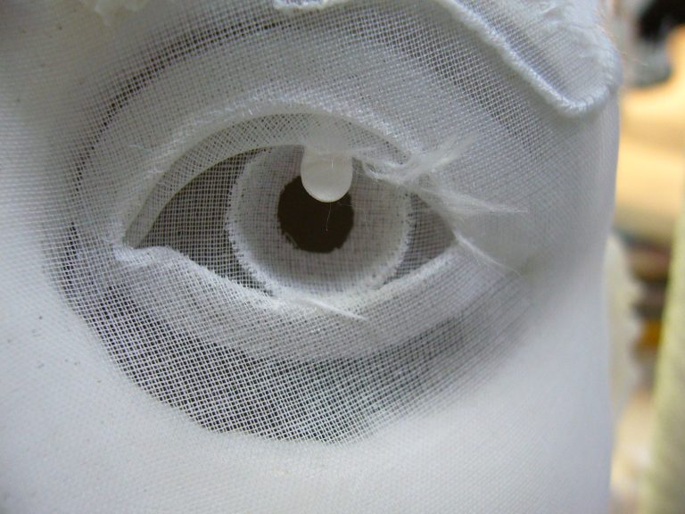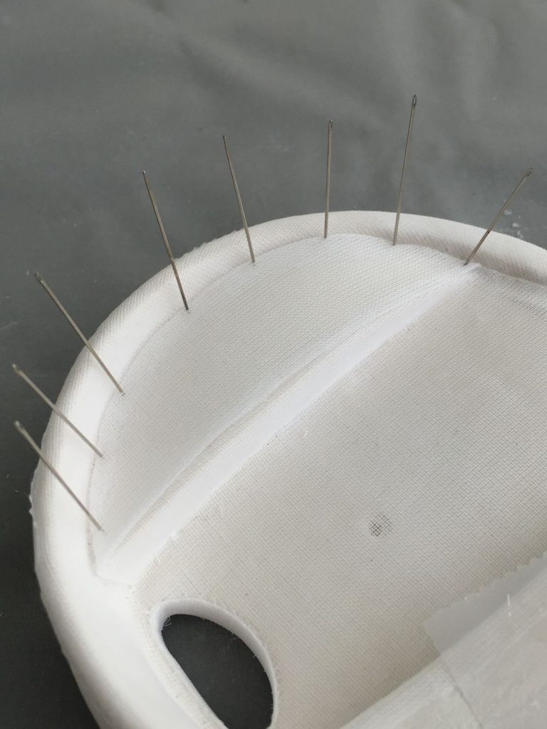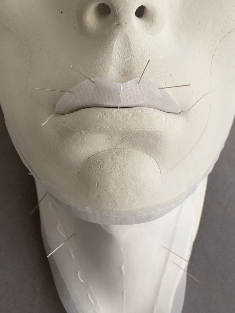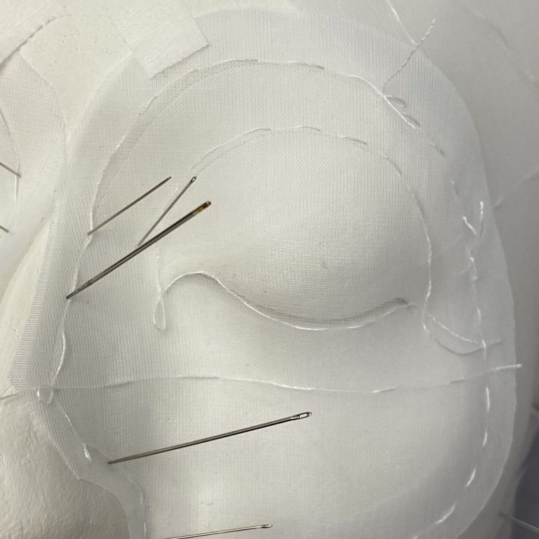 The pieces are pinned to the plaster and gradually assembled. Various sewing techniques are used, such as the blind stitch or zigzag stitch, depending on the desired effect. This work requires precision and attention: the seams are sewn with a very fine needle and transparent thread, stitch by stitch.