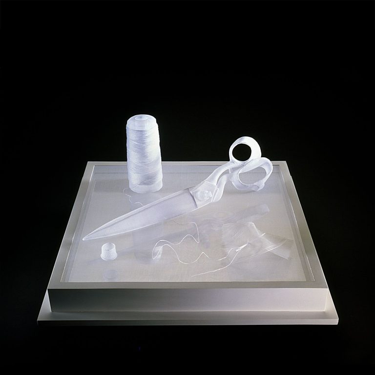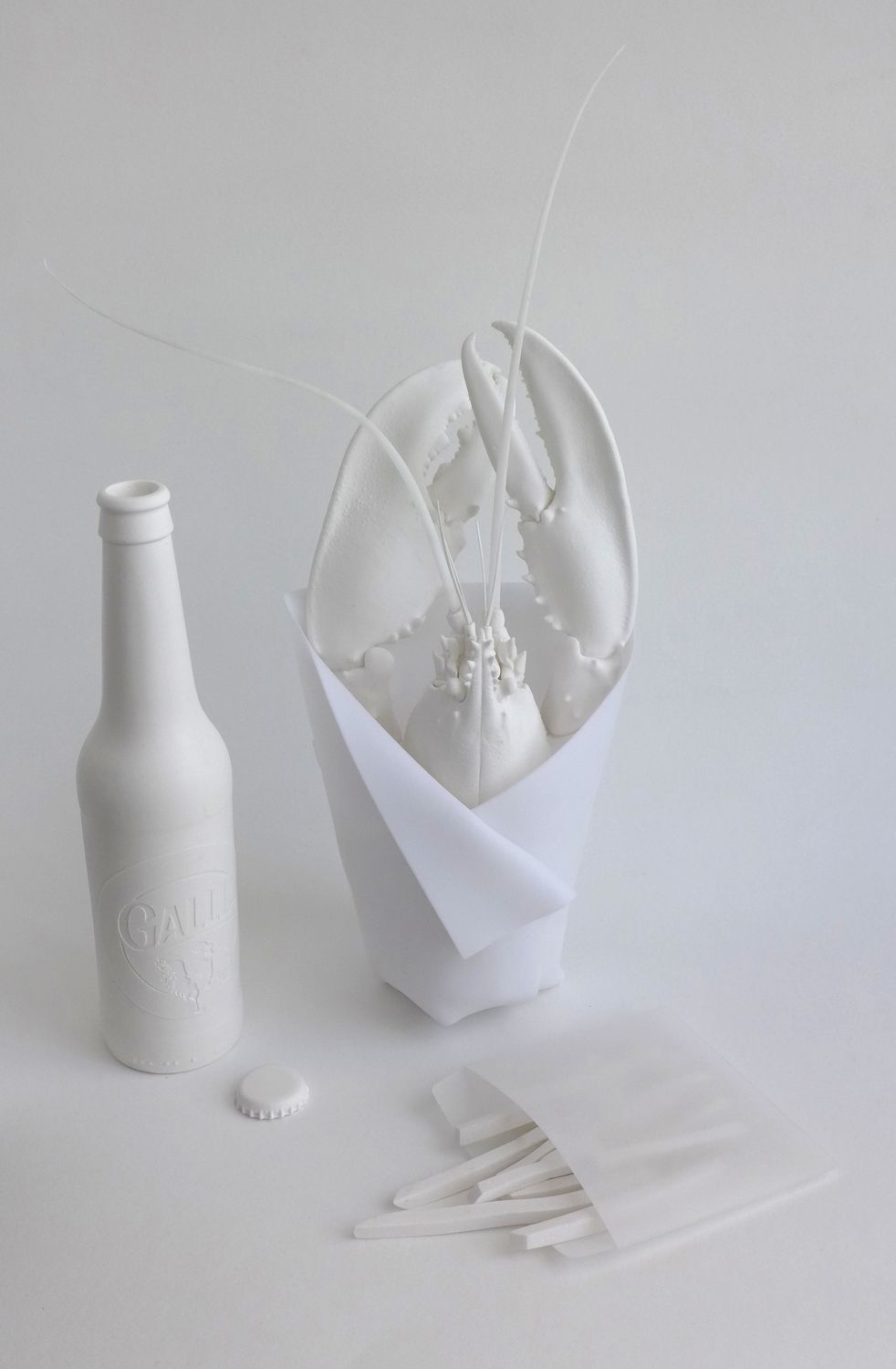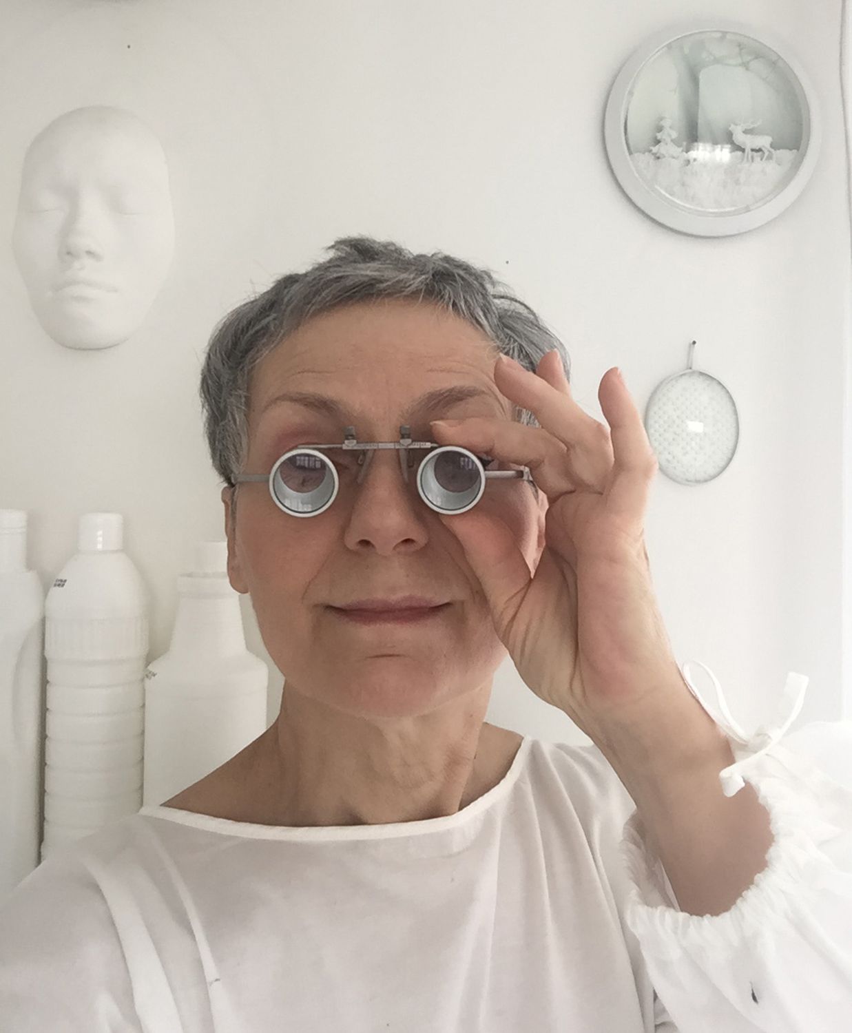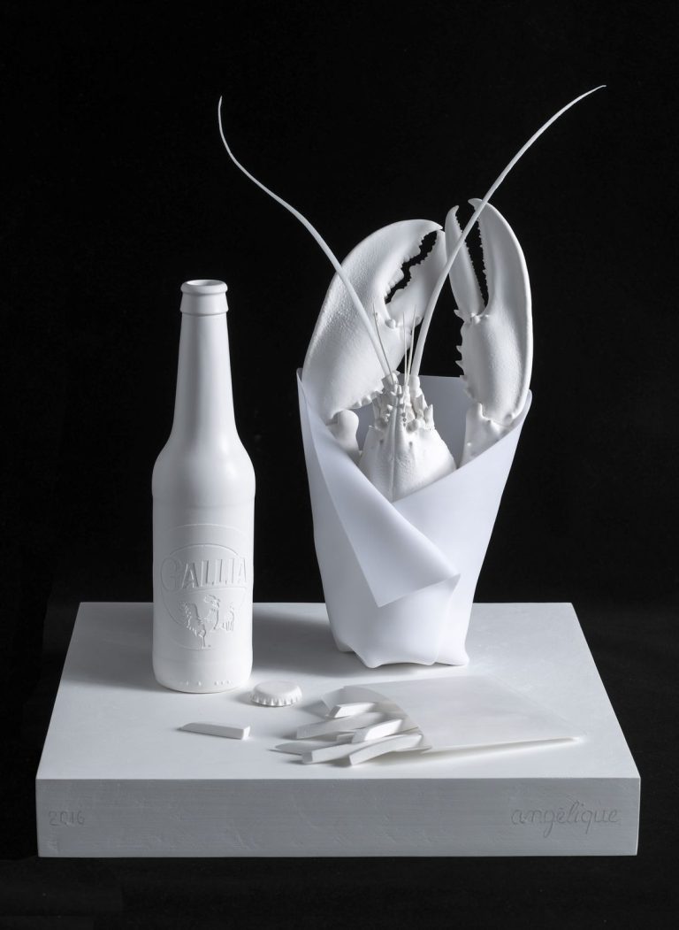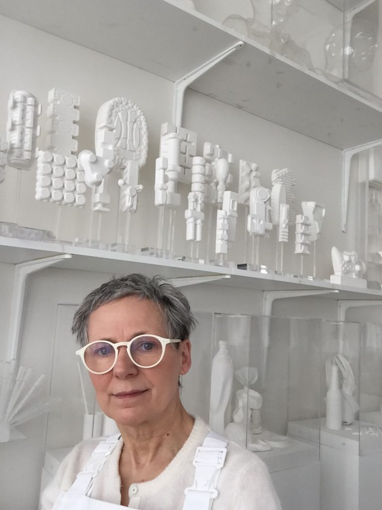 Today, her work focuses on everyday objects and their thermoformed packaging. She transforms these hollow forms into solid volumes, giving them a new presence. Through this approach, she explores the themes of recycling and upcycling in art.