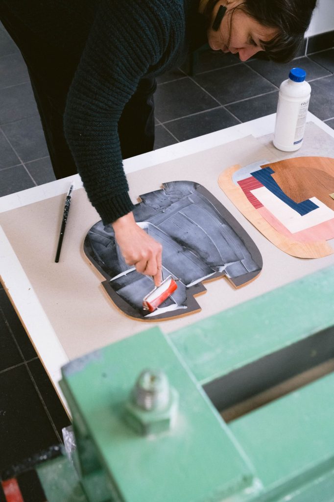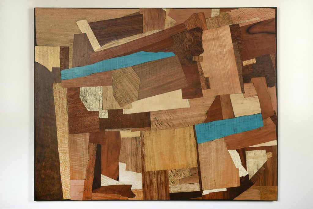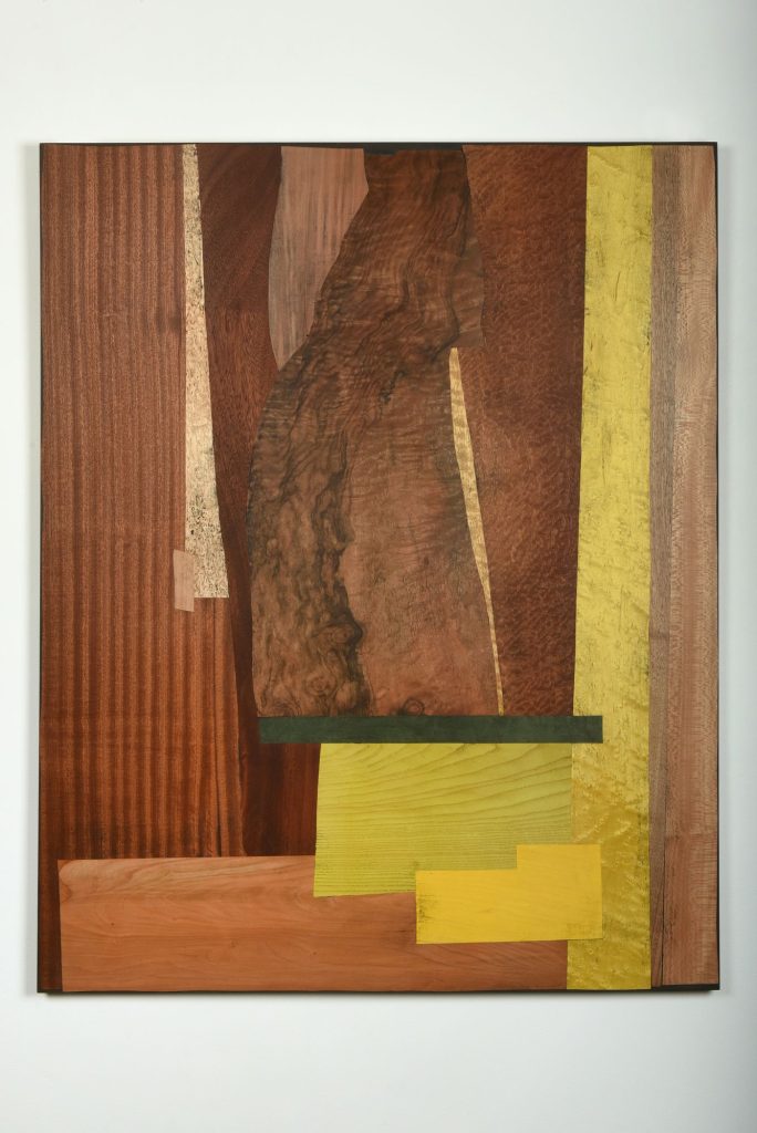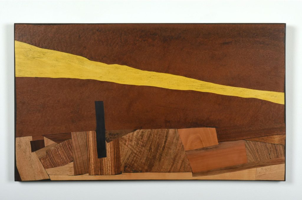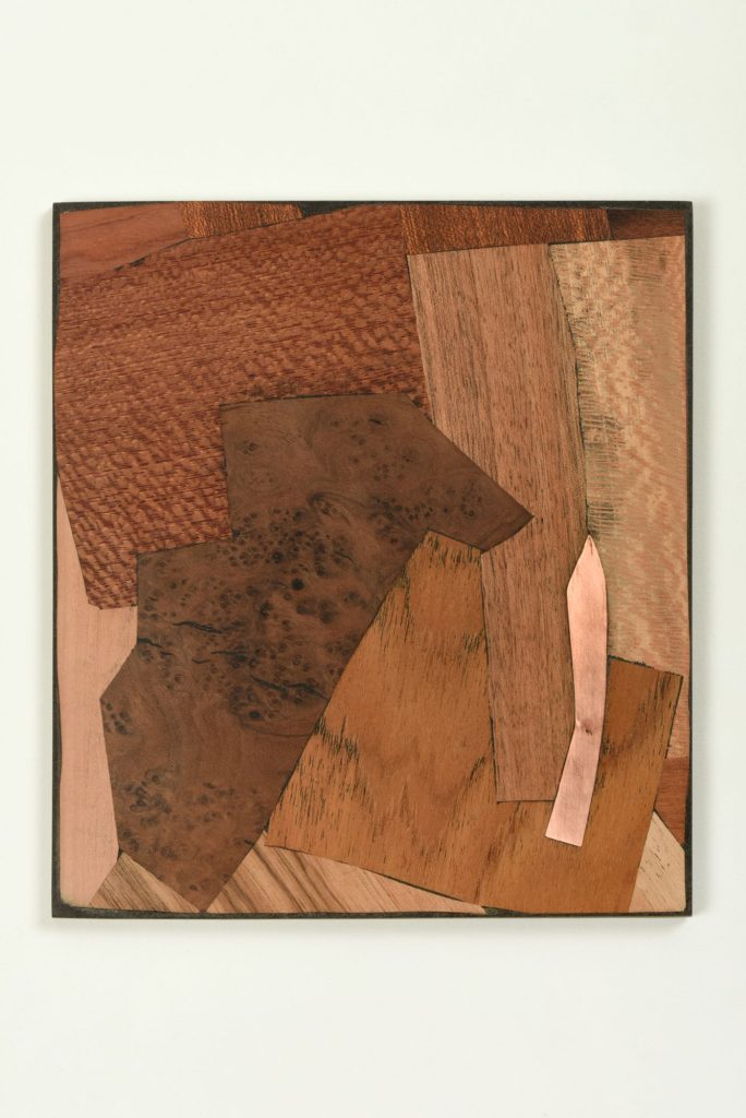 Her wood marquetry practice is distinguished by a profoundly contemporary approach. Far from classical or figurative codes, she infuses this ancestral technique with an aesthetic inspired by abstraction, minimalism, and the textured work of contemporary art. She works with the grain, knots, and natural nuances of the wood, as well as the light it captures and reflects. She sometimes combines other materials such as brass or copper, adding a tactile and contrasting dimension to her works.