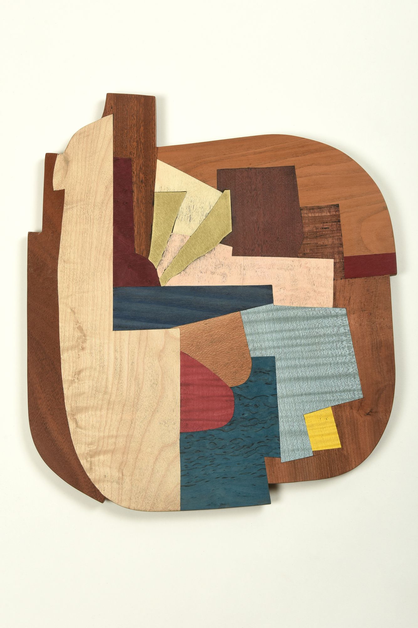 Her artistic world explores the subtle dialogues between colors, geometric or organic shapes, and living materials. Each piece thus becomes a sensitive composition, constructed from carefully selected wood species arranged in a quest for balance and rhythm.