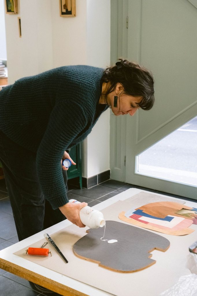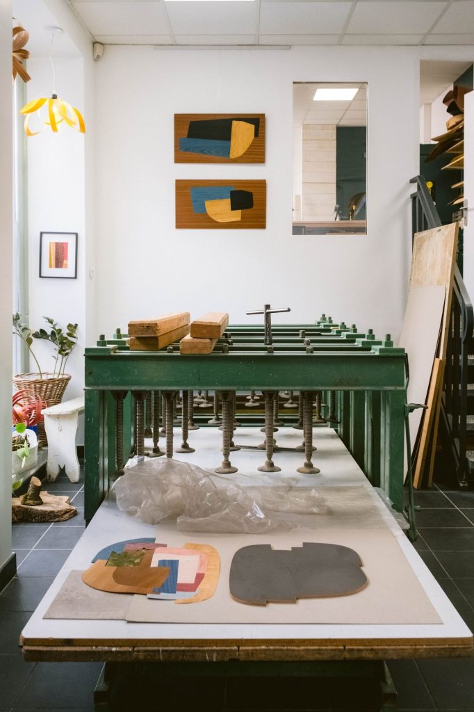 Straddling the worlds of art and interior design, her approach offers unique or limited-edition pieces, designed as both visual works and decorative elements. She advocates a joyful, intuitive, and colorful marquetry style, where free movement and instinct guide creation rather than fixed drawing.