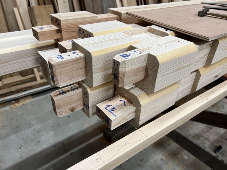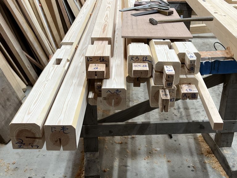 La formation s’articule autour d’un solide volet pratique. Les stagiaires s’initient au traçage (sumitsuke), au travail progressif du bois et au maniement précis des outils traditionnels, ciseaux, scies à main, avant de se confronter aux assemblages japonais indispensables à la construction d’une ossature sukiya.