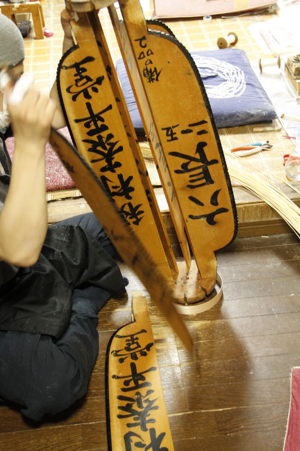 Ancien grossiste devenu atelier intégré, Akimura Taiheidō permet à Keizo Akimura de contrôler toutes les étapes de fabrication, du montage du moule en bois démontable à l’enroulement des armatures, en passant par la pose du washi et la décoration par calligraphies et motifs traditionnels. En contact constant avec des chercheurs, l’artisan explore ces techniques selon une approche scientifique et analytique, garantissant solidité, diffusion optimale de la lumière et fidélité esthétique.