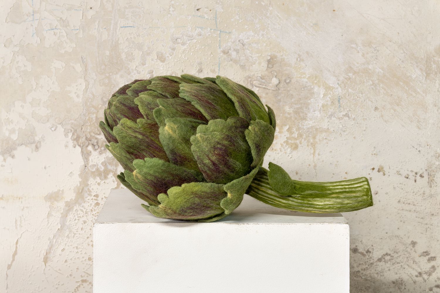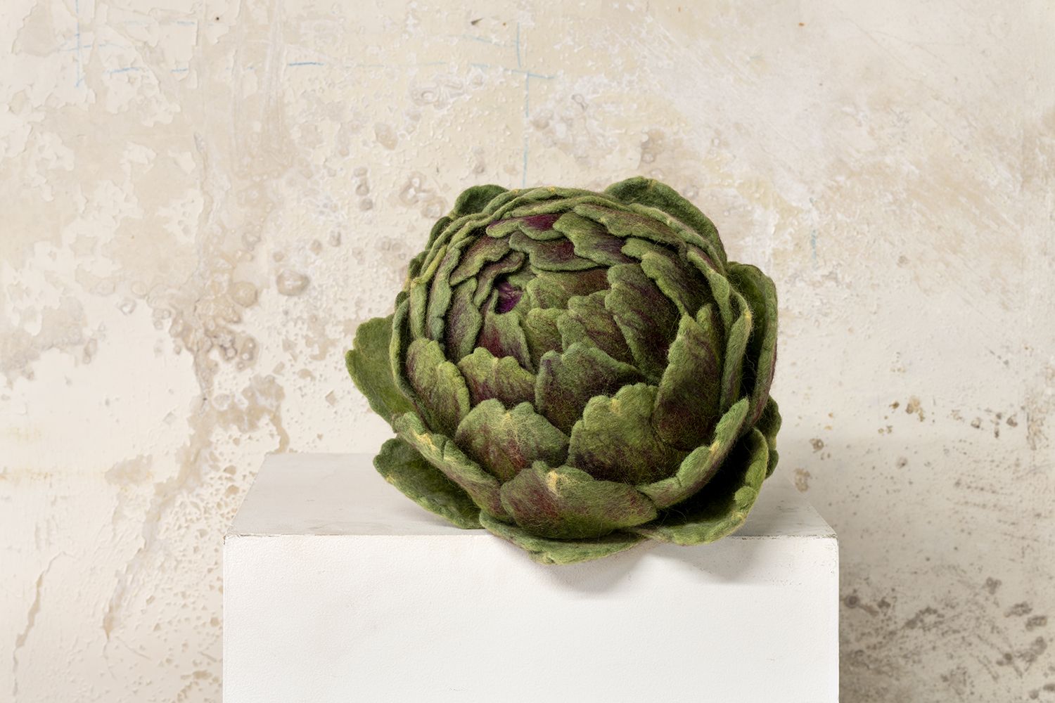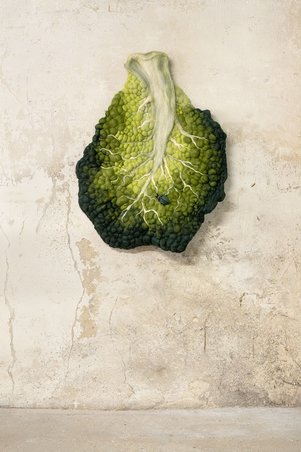 Lorsque la pandémie l’isole du monde extérieur, la laine cardée s’impose comme une évidence cathartique. Matière vivante et écologique, fruit d’un travail humain et animal, elle devient le lien tangible qui la relie encore au monde. Ce medium fluide, évoquant féminité et foyer, ultra plastique et pictural, qu’elle transforme par des dizaines de milliers de coups d’aiguille, lui confère un pouvoir créatif renouvelé.