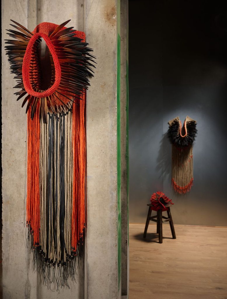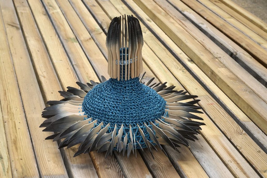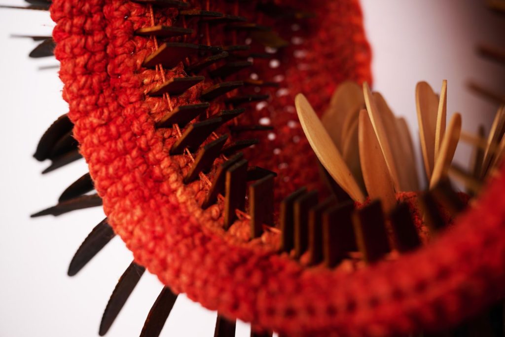 À travers le fil, noué, tissé ou crocheté, se dessine une réflexion plus large sur le vivant. Entre fragilité et résistance, disparition et transformation, ses pièces interrogent les relations d’interdépendance entre l’humain, l’animal et l’environnement. Une pratique à la fois poétique et engagée, qui invite à reconsidérer notre manière d’habiter le monde.